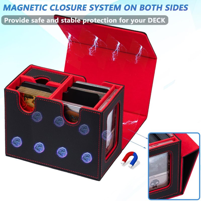 - 【MTG Commander Deck Box】Crafted with Commander players in mind, our innovative design is tailor-made for your Commander deck. You can securely store your commander or leader card in the included 35PT magnetic card holder and proudly display it in the specially designed external display window.This unique feature ensures that you can quickly identify which deck is inside each card box.