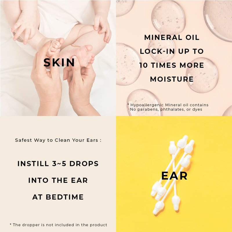 - Mineral oil for Ear Cleaning : How do I use it? Instill 3~5 drops into the affected ear at bedtime. Overnight the oil will turn the hard wax into a liquid substance. In the Morning, clean the ear's outer part with a washcloth to remove the residual oil and ear wax.