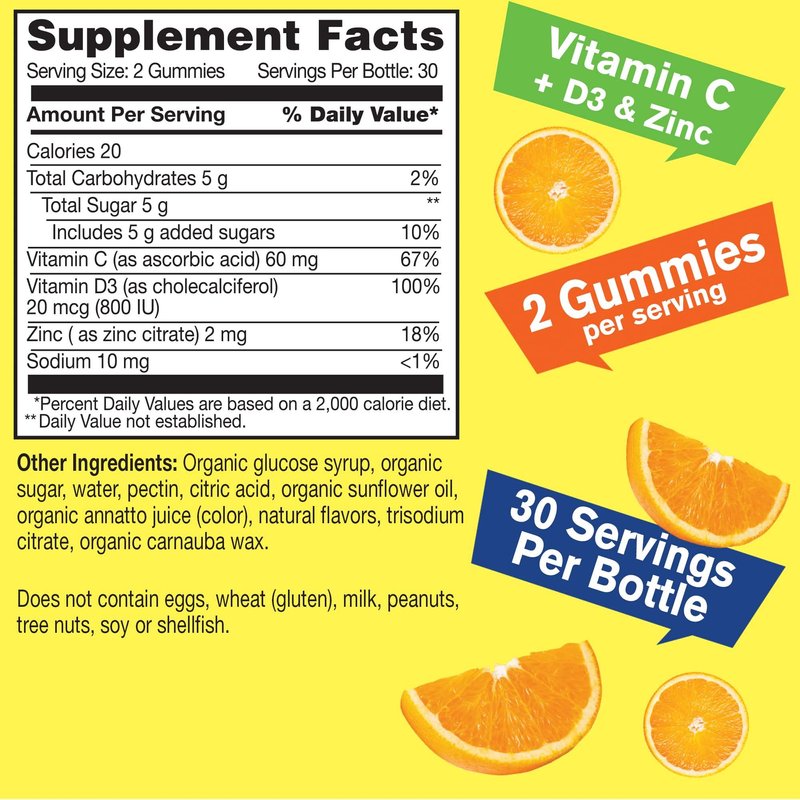 WellYeah Organic Vitamin C + D3 + Zinc Gummies - Immune Boosting, Antioxidant-Rich, and Bone Health Supporting, USDA Organic, Vegan, and Non-GMO - Gluten-Free, Nut-Free Gummy - 60 Count
