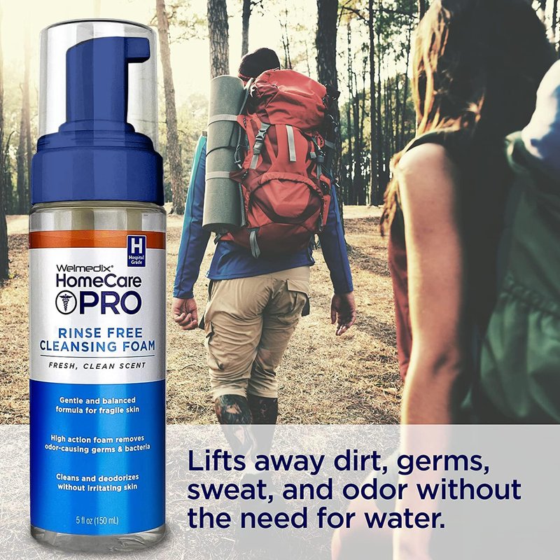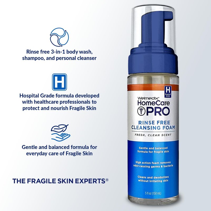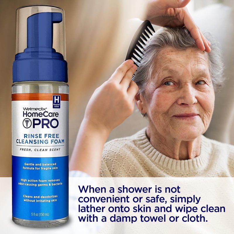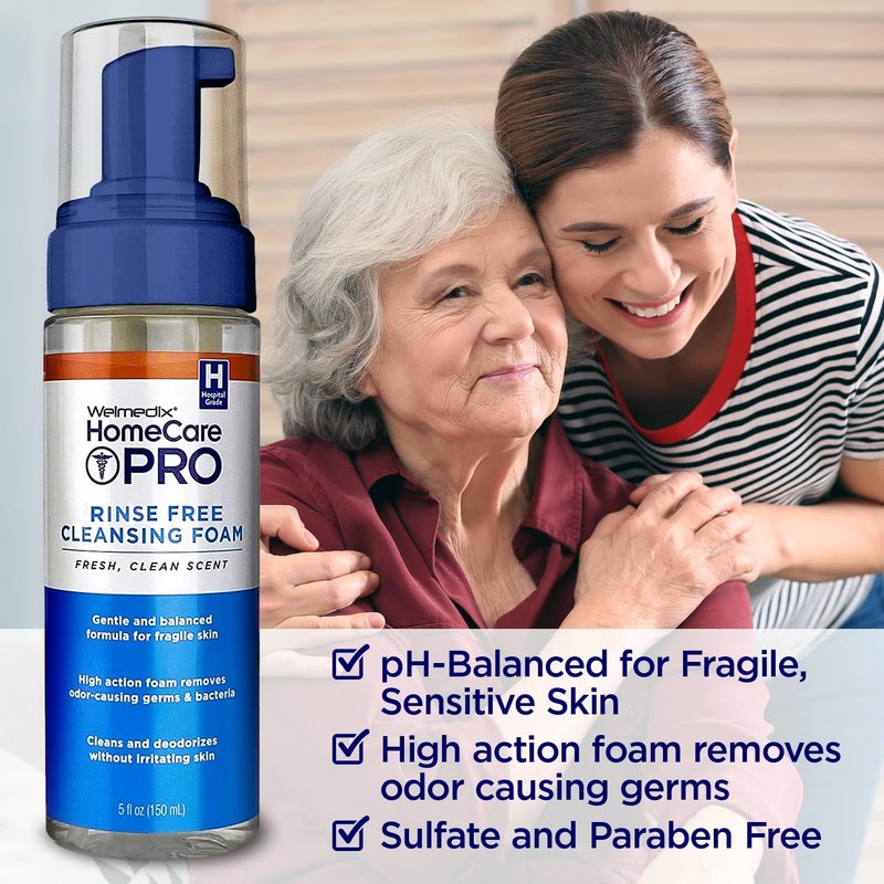Welmedix HomeCare PRO No Rinse Body Wash Cleansing Foam, easier cleansing for caregivers managing incontinence, pressure ulcers, bedsores + use with adult wipes, disposable washcloth (5oz)