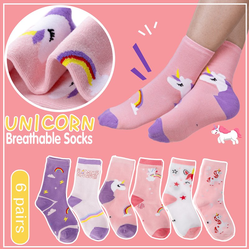 WELSOX Girls Kids Unicorn Socks Cute Fun Crew Fashion Funny Gifts Novelty Stocking Stuffers Soft Cotton Socks 6 Pairs(Unicorn,3-5 Y)