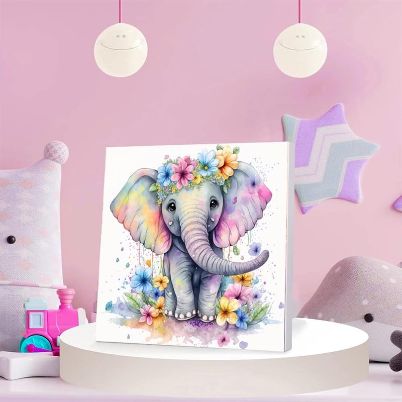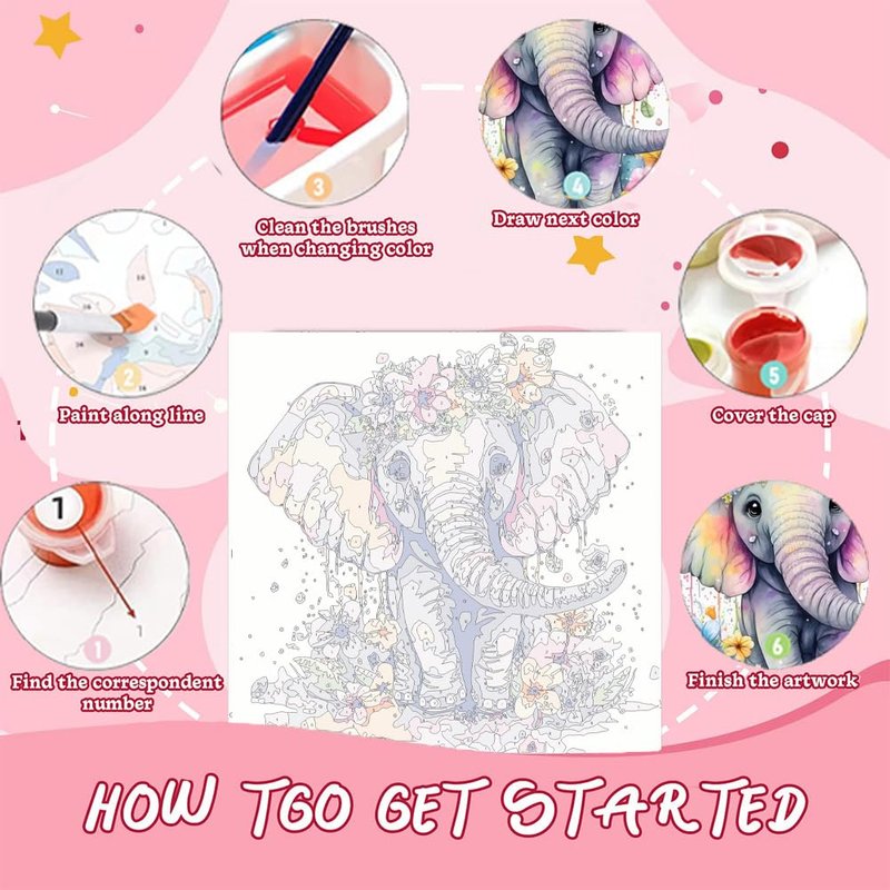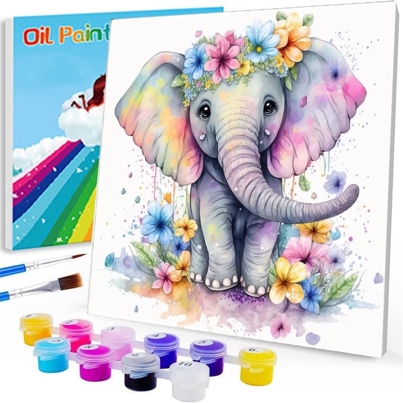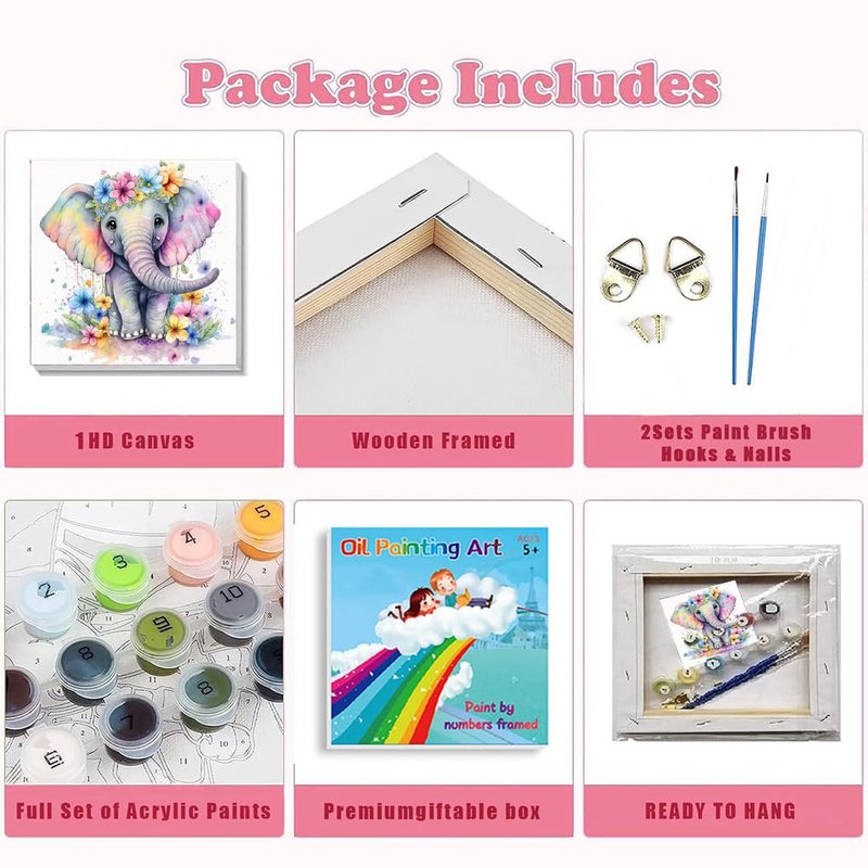 WEMEON Elephant Paint by Numbers Kit for Kids with Framed- Easy Paint by Numbers Kit for Kids Age 4-12, Simple Painting Paint by Numbers for Gift Home Wall Decor(10x10Inch)