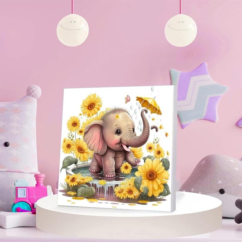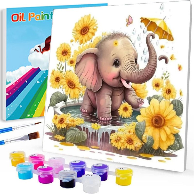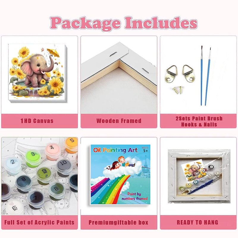 WEMEON Elephant Paint by Numbers Kit for Kids with Framed- Easy Paint by Numbers Kit for Kids Age 4-12, Simple Painting Paint by Numbers for Gift Home Wall Decor(8x8Inch)