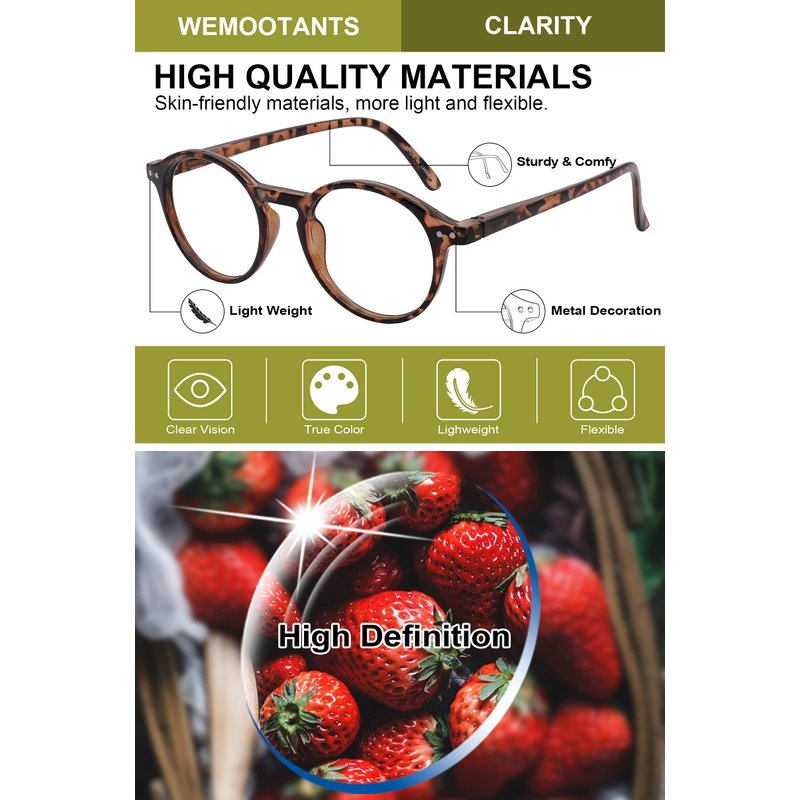 ♦WEMOOTANTS is committed to providing stylish, high-quality READING GLASSES at reasonable prices. Here, the goal is to buy a beautiful pair of reading glasses without spending a lot of money. We are happy to strike a balance between quality, fashion and cost. In addition, make fashion within reach!