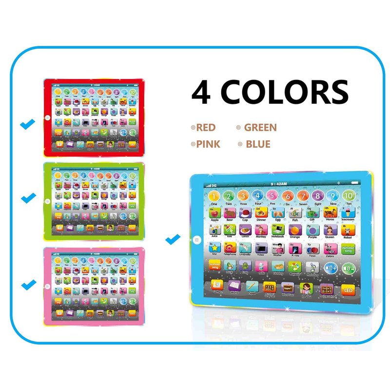 - 3.The screen is a sticker with clear patterns .Keep children away from TV and mobile phones, and away from radiation. The screen of this children's tablet toy is a sticker with a point-and-read function, so the screen cannot be switched.It is definitely a perfect educational toy for young children, suitable as birthday gifts, Christmas gifts, rewards, etc.