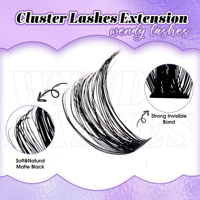 - Natural Beauty Made Effortless: Experience the natural look and feel of Wendy Lashes cluster lashes, expertly designed to mimic the texture and curvature of real lashes. Lightweight and comfortable, our lashes seamlessly blend with your natural lashes for a flawless finish that enhances your beauty effortlessly. Perfect for beginners, our DIY eyelash extension kit ensures professional-quality results at home with minimal effort required.