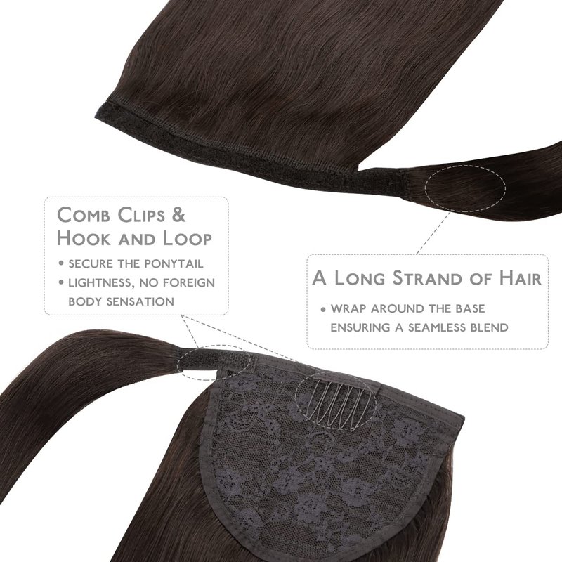 - 【Easy to Wear & Long Lasting Wear】- Wrap around ponytail hairpieces, easy to wear and take off by yourself, no damage to your own hair. With the magic paste design, you don’t need to adjust it frequently. The ponytail extensions can hold into one place, it is convenient and can save you time. It's also very easy to restyle on any occasions and maintain to keep in good condition.
