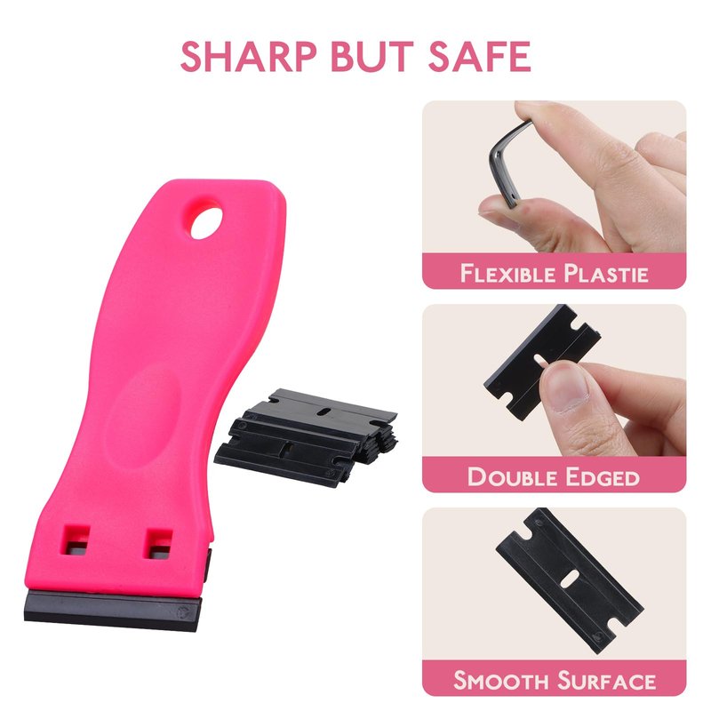 - 【Hot Pink Color for Visibility】The vibrant hot pink color of the scrapers add a touch of style to your toolkit while also serving a functional purpose. Paired with the black plastic blades, this color coordination creates a visually appealing. Beyond aesthetics, the hot pink hue ensures easy visibility and quick identification among your tools and supplies, allowing you to enhance overall efficiency during cleaning tasks by quickly locating the tool when needed.