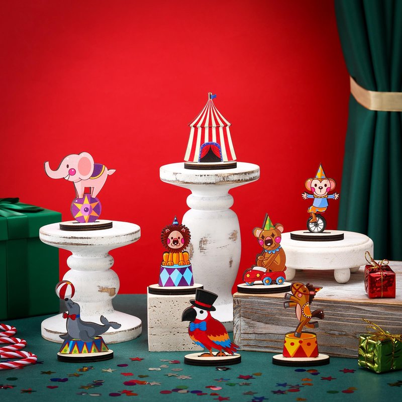 - Material and Size: our circus party decorations table topper is crafted using quality, durable wood to ensure a long lasting product; It is appropriately sized at roughly 2.76 inches in height and around 0.2 inches in thickness, suitable for creating a noticeable and inviting atmosphere