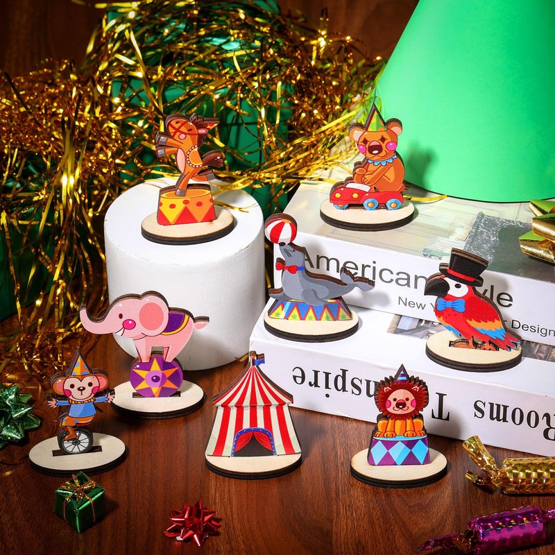 Wenqik 16 Pcs Wood Carnival Centerpieces for Tables Carnival Party Decorations Circus Theme Party Decorations Wooden Carnival Table Decorations for Carnival Baby Shower Birthday Party Supplies