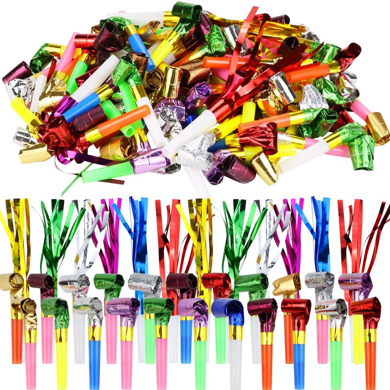 Weoxpr 144pcs Two Kinds of Noisemakers Blowouts Party Horns, Bulk Toys, Birthday Party Favors, New Years Party Noisemakers, Party Accessory, Prizes for Kids, Party Whistles and Streamers