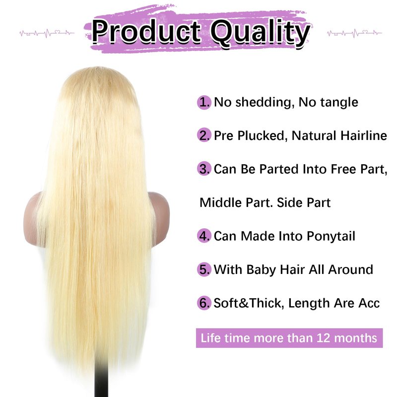 - 613 13x6 Lace Front Wig Human Hair: 10A Grade unprocessed virgin human hair wigs, Our Straight 613 Blonde lace front wigs human hair are Pure Plant Hair Coloring to Keep Hair Healthy and Active, soft and natural , full and healthy end.