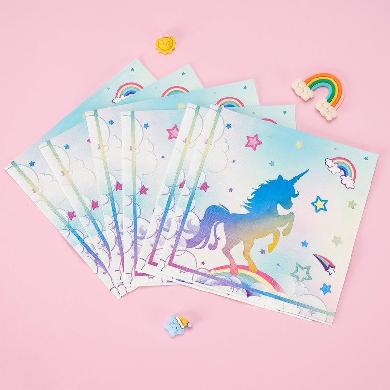 - UNIQUE DESIGN: Our Unicorn Napkins are designed with a gorgeous rainbow unicorn print to add a touch of magic to your party and wow your guests.