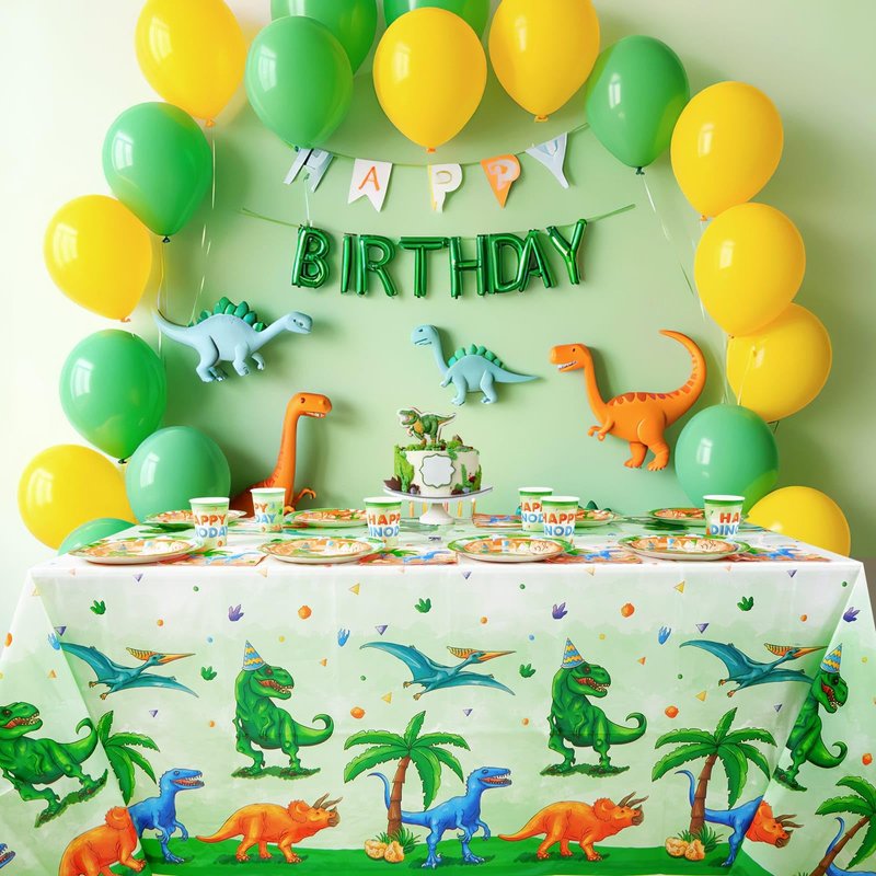 - 【DECOR INTO THE JURASSIC】 - Decorating with this kids dinosaur party tablecloth, bring your kids into the vibrant Jurassic world. The colorful dinosaurs roam freely and add a playful touch to kids' theme parties.