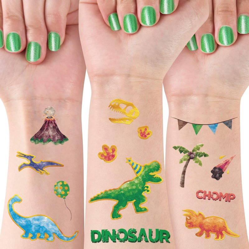 - DINOSAUR THEME - This tattoo sticker adopts a dinosaur-themed design, with patterns of T-rex, stegosaurus, pterosaur and other dinosaurs. Boys will love this tattoo sticker very much!