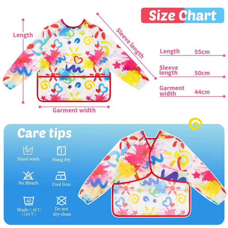 - EFFECTIVE PROTECTION:Painting Smocks made of waterproof and oil-proof fabric protect kids' clothes from stains. Long sleeves and elasticated cuffs to maintain clean cuffs. Easy to clean, simply wipe gently or rinse and dry