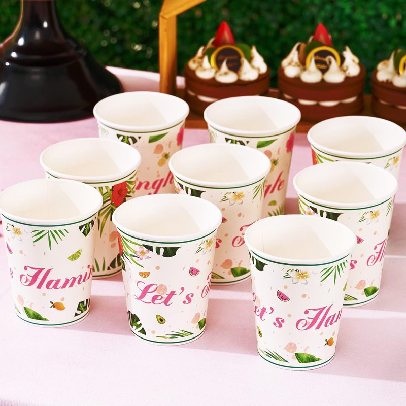 -This flamingo disposable tableware is the best choice for your summer luau party. -Made from safe and environmentally friendly materials, 100% harmless for you and your kids. -You would have 48 pieces party supplies at one time. Enough for 16 guests. -Package Content: 16 × Dinner plates 9“ / 16 × Dessert plates 7” / 16 × Napkins. 12.8” × 12.8” .