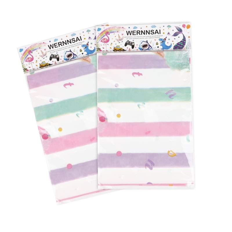 - 【Versatile Use】 -- 54" x 108" Size perfectly match your party demand and suitable for most tables. Not only suitable for birthday, wedding and ice cream themed party, but also for outdoor use such as picnic and hiking.