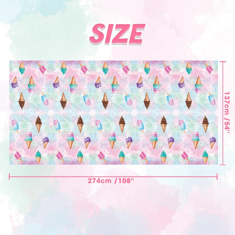 - Package Include - 2 pack ice cream table wear. Length 108 inches x width 54 inches. our rectangular birthday tablecloth can accommodate about 8-12 people to feel the party atmosphere, fully meet the needs of the party.