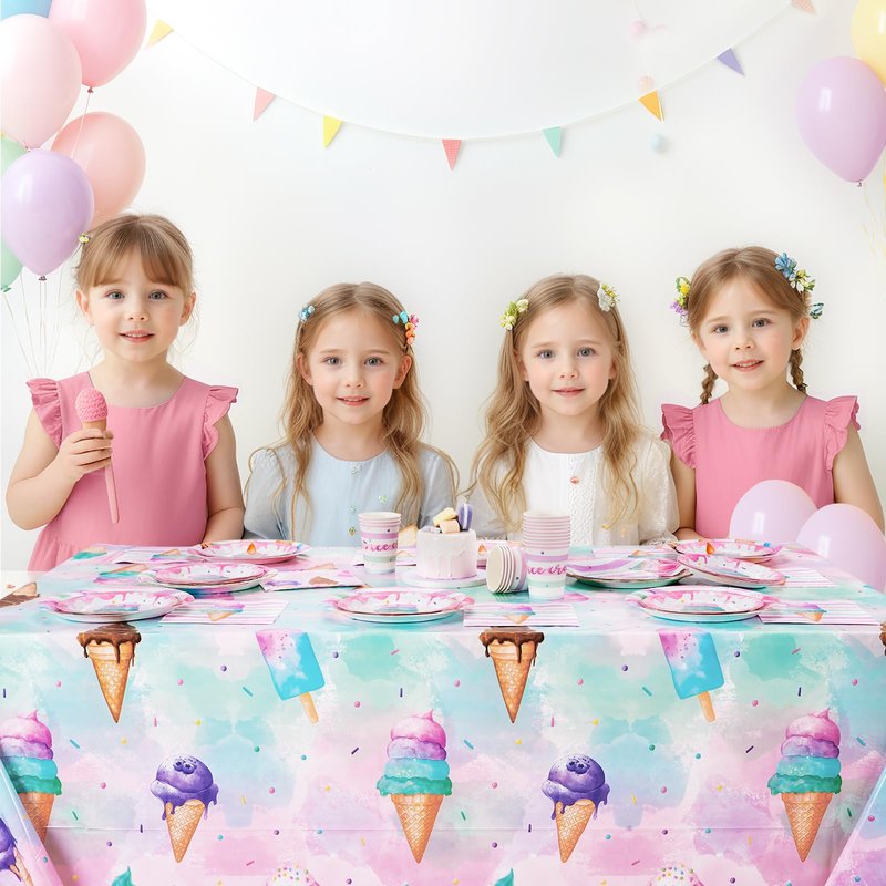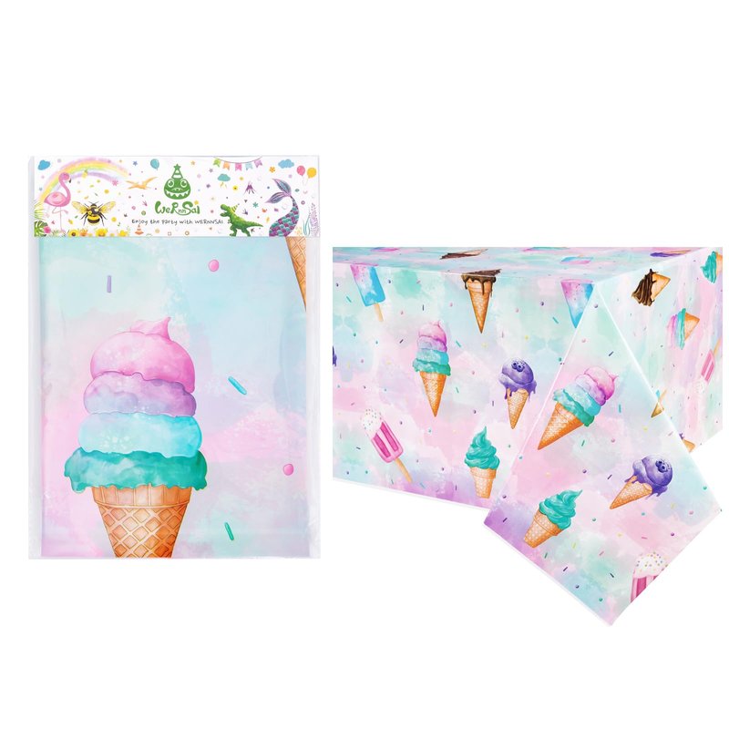 - Wide Usages - Our tablecloths have a very decorative design with distinct colors. Ice Cream disposable party table cover is an ideal choice for summer birthday celebrations, garden party, prom theme decorations.