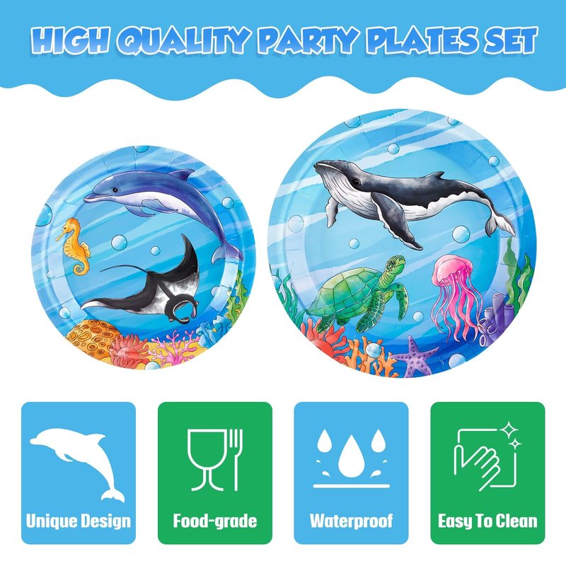 - 【OCEAN ANIMAL THEME】 - Decorate your child's party with our under the sea party supplies to wow your little party guests. Featured with vivid sea animal prints, this ocean theme party tableware kit gonna transform your birthday party into a beautifully underwater wonderland!