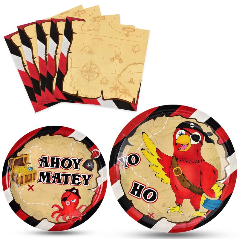 - The tableware is designed for pirate lovers, cute pirate animals and mysterious treasure map napkin make your pirate party more interesting! - There are also other party supplies in the pirate series, welcome to our store! - Feel free to contact with us for any unpleasant reasons, we will reply in 24hrs.