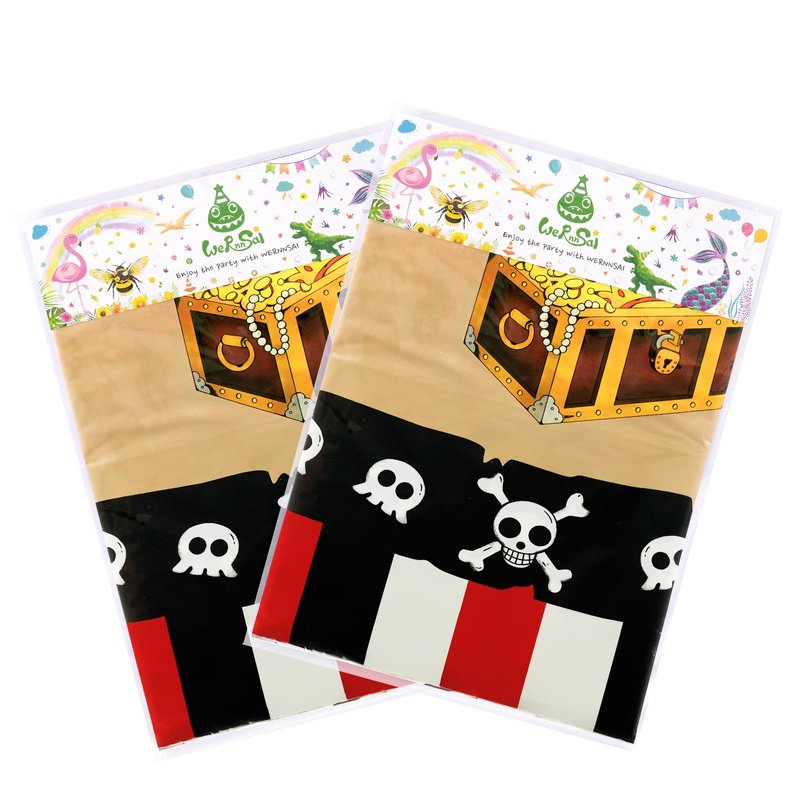 - WHAT YOU WILL GET: Two 54'' x 108'' pirate themed tablecloths. These tablecloths not only protect your table from dirt, but also make great party decorations. Let's uncover the hidden pirate treasure together!