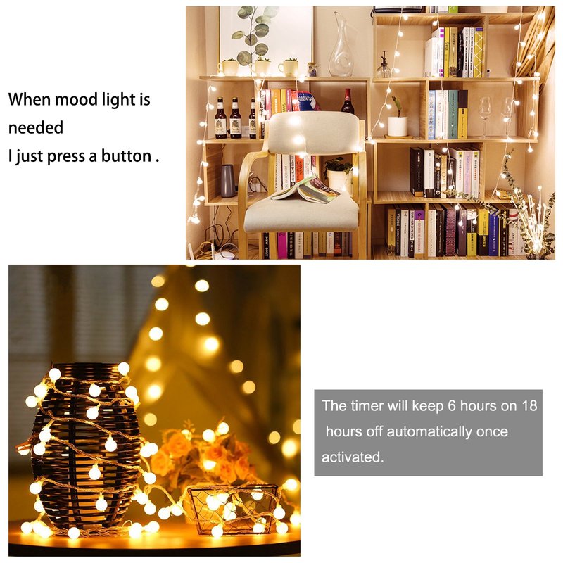 - [Wonderful Decoration] You will find this string light perfect ornament for your home and garden,Christmas tree, tent, camping outdoor. 100 LEDs globe warm white string lights creates a joyful and festive ambiance to your family and your friends.