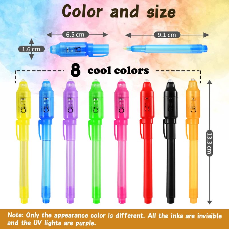 - Safe and Non-Toxic: The package of 32 magic pens is a great addition to kids' parties or classroom activities. The invisible ink is safe for kids to use, but children under 3 years should use it under the supervision of parents