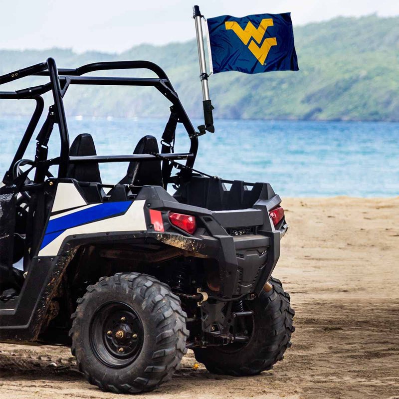 Our West Virginia Golf Cart and Boat Flag measures 12x18 inches in size, has quadruple-stitched fly ends, is made of durable 2-ply double-sided polyester, and has two metal grommets for attaching to your boat mount, golf cart, motorcycle mount, or any of your uses. The screen printed West Virginia logos are Officially Licensed and Approved by University and are viewable and readable correctly on both sides.
