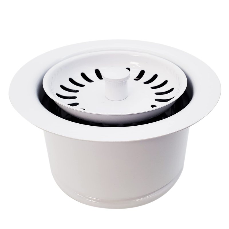 Westbrass D2082S-50 3-1/2" Extra-Deep Collar Kitchen Sink Waste Disposal Flange & Strainer Stopper, Powder Coat White