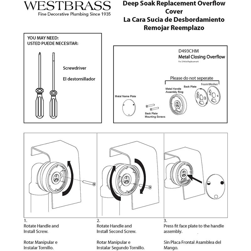 Westbrass D493CH-07 Patented Deep Soak Round Replacement 2-Hole Bathtub Overflow Cover for Full and Over-Filled Closure, Satin Nickel