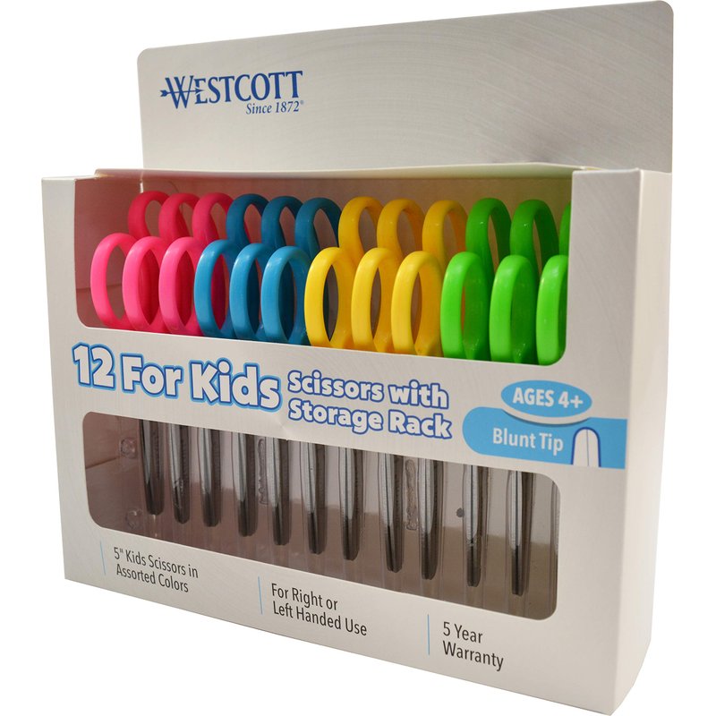 Westcott 13140 Right- and Left-Handed Scissors, Kids' Scissors, Ages 4-8, 5-Inch Blunt Tip, Assorted, 12 Pack