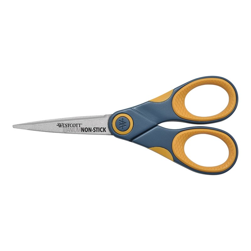 Westcott 14881 5-Inch Non-Stick Titanium Scissors For Office and Home, Yellow/Gray