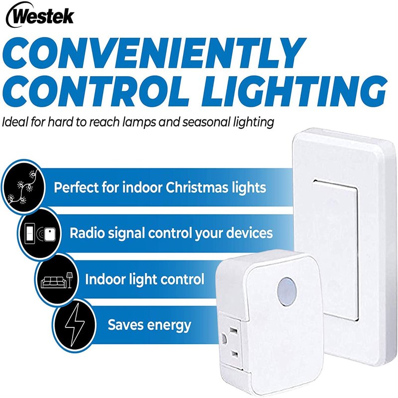 Westek Indoor Wireless Light Switch and Receiver Kit – No Wiring Required, Up To 100ft Distance – The Easy Way to Add a Switched Outlet, Ideal for Lamps, Seasonal Lighting, Small Appliances