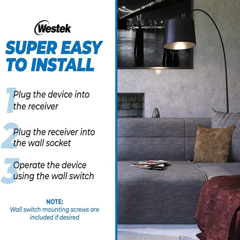 - Easy to Install – Simply plug the desired appliance or lamp into the receiver and then plug into the outlet. Use the indoor remote light switch to turn the device on and off, no need to use an electrician