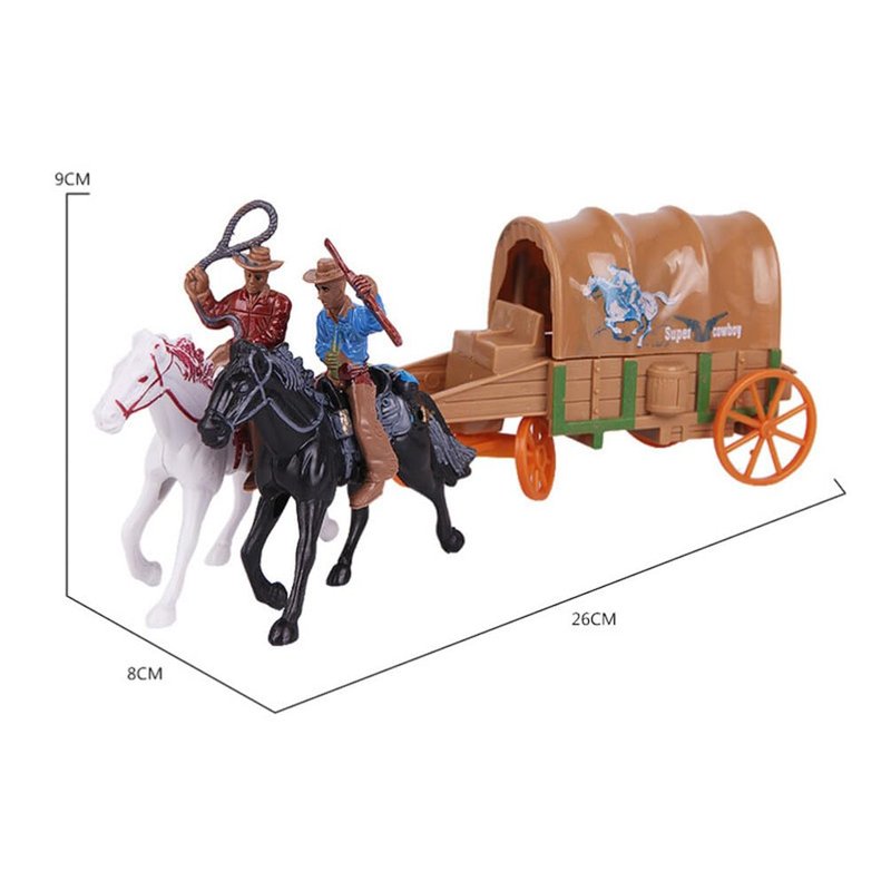 Western Figures Horse Carriage Model Playset Plastic West Figurines Riding Horse Action Figure Educational Toys Table Decoration for Boys Girls Kids