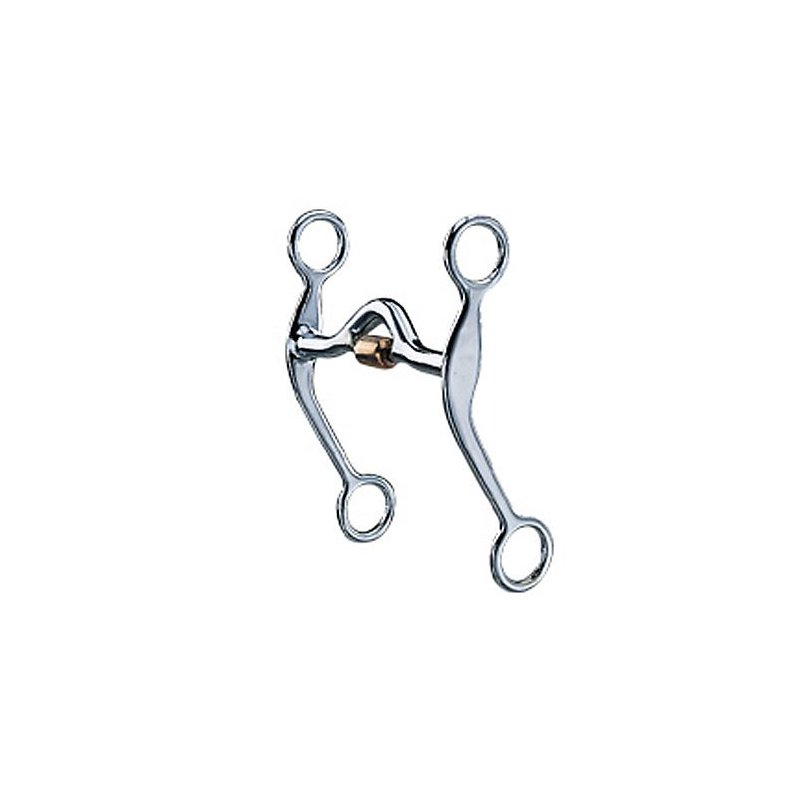Western SS Med Port Roller Curb Bit 5 inch medium port with copper cricket and 6 1/2 inch cheeks. Chrome plated. Pinchless.