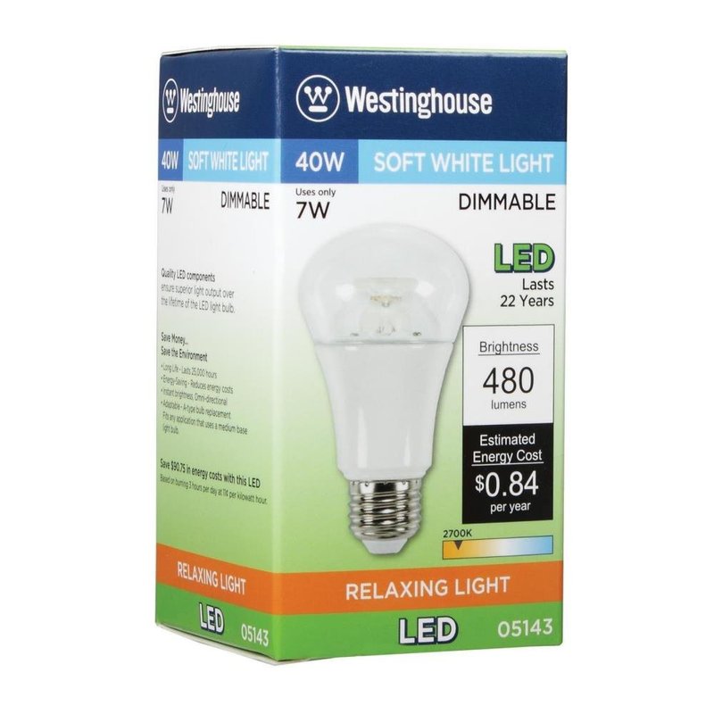 Westinghouse 0514300 7W, Replaces 40W A19 Dimmable Soft White LED Light Bulb with Medium Base