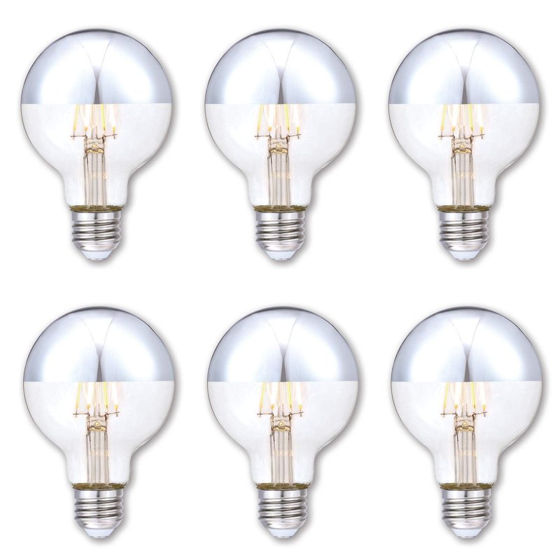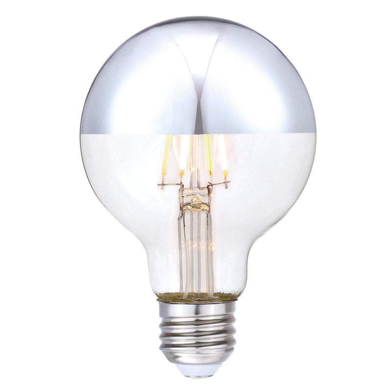 - Half chrome filament LED globe light bulb's mirror-like top reflects light back into the fixture, creating a soft, ambient glow, ideal for use in pendants, and vanity fixtures where the bulb is visible.