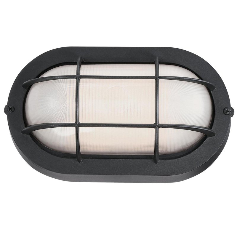 - Outdoor rated wall sconce, textured black finish and white glass cage shade