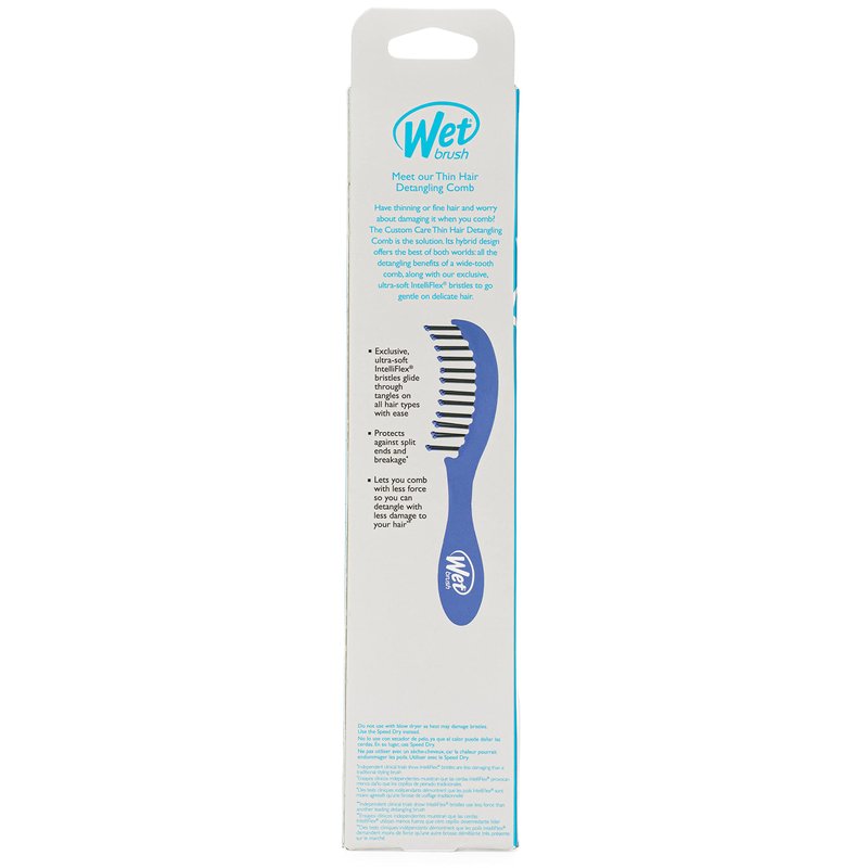 - Thin Detangler: The Custom Care Thin Hair Detangler can be used on wet or dry hair, as it carefully loosens tangles and smooths over strands to provide the gentlest detangle.