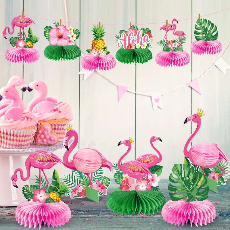 Wettarn 12 Pcs Flamingo Honeycomb Centerpieces Decorations Hawaii Luau Honeycomb Centerpieces Flamingo Party Table Centerpieces Summer Tropical Aloha Party Table Toppers Hawaiian Luau Party Supplies