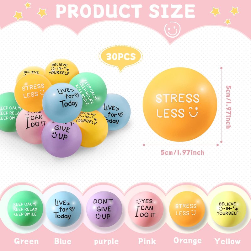 - Colorful Stress Balls: you will receive 30 pieces of motivational stress balls in 6 different colors and quotes, including light pink, light green, light purple, light yellow, light blue and light orange, 5 pieces for each color; The sufficient quantity and rich colors can suffice your needs for stress relief and replacement