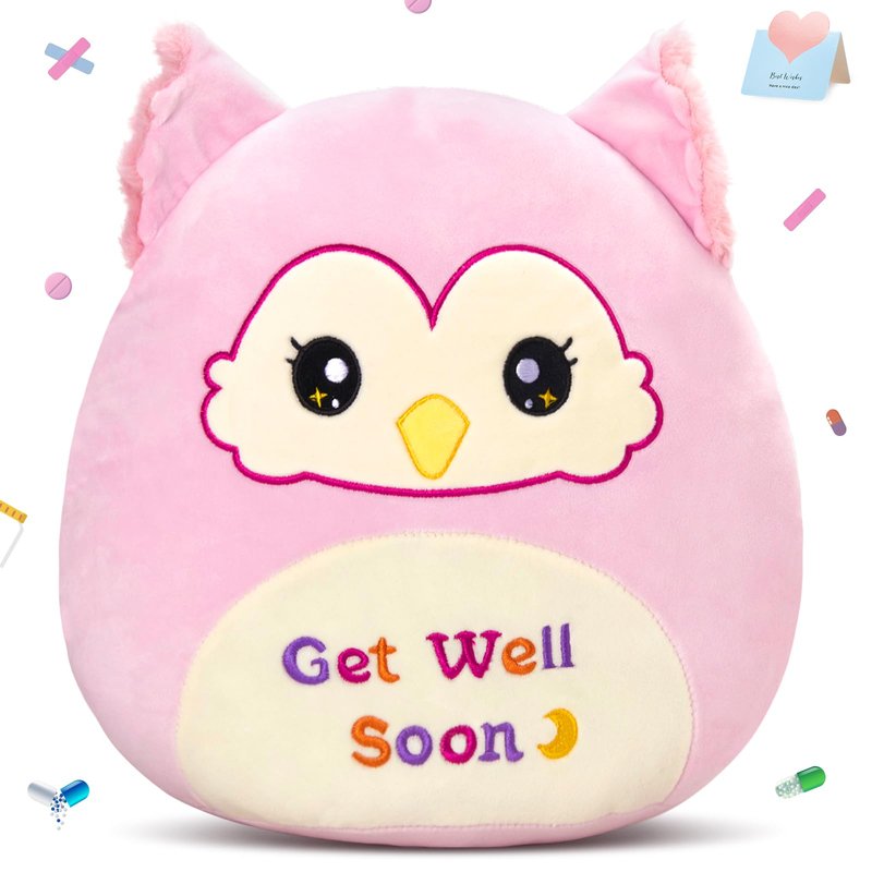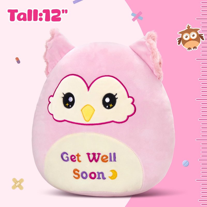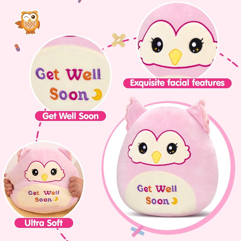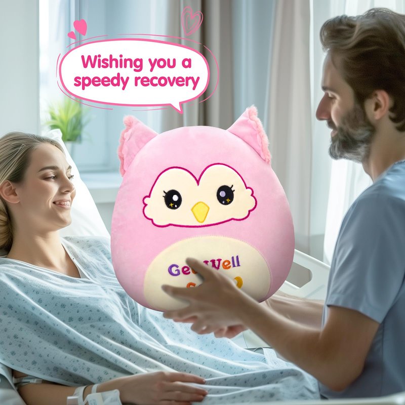 - Adorable Design: This 12-inch pink owl plush pillow features a cute "Get Well Soon" message, perfect for bringing comfort and cheer to anyone feeling under the weather.