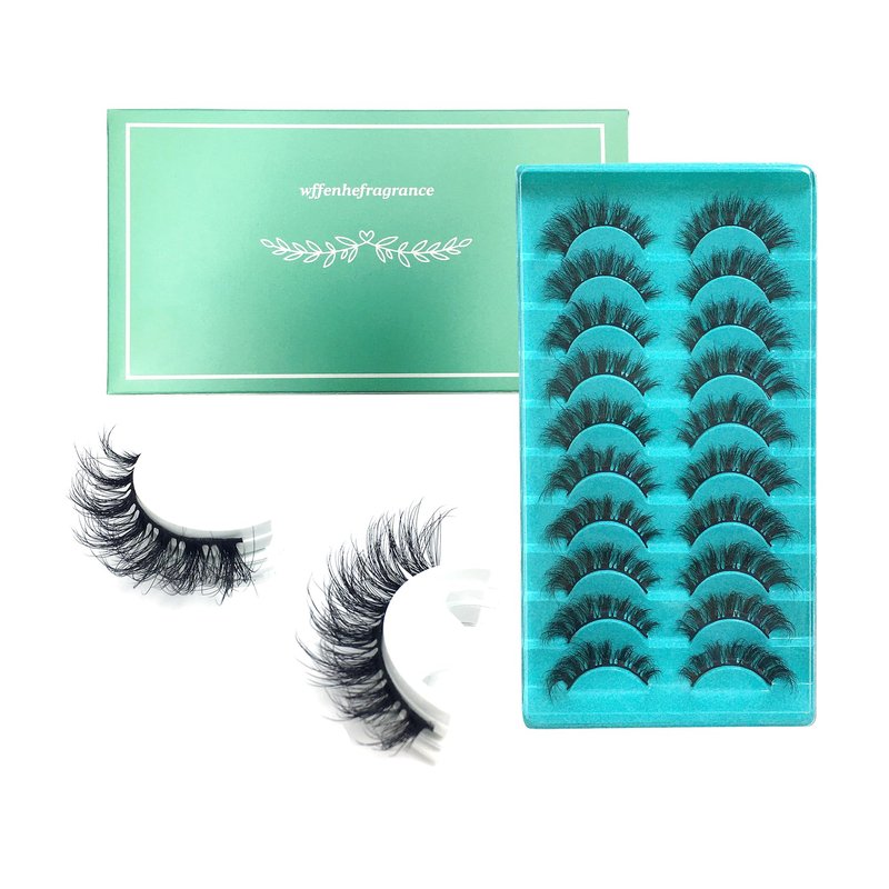 Wffenhefragrance 3D Curl Artificial Mink Eyelashes - Fluffy Wispy Lashes 10 Pairs|Natural Look,Easy to Apply&Reusable|Perfect for Daily Wear,Parties&Special Occasions|Suitable for Makeup Enthusiasts|9-15-17mm. 100% Vegan & Cruelty Free Wispy Fluttery & Fluffy Volume Comfortable Flexible Cotton Band Durable & Reusable