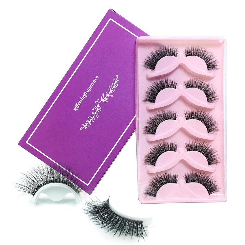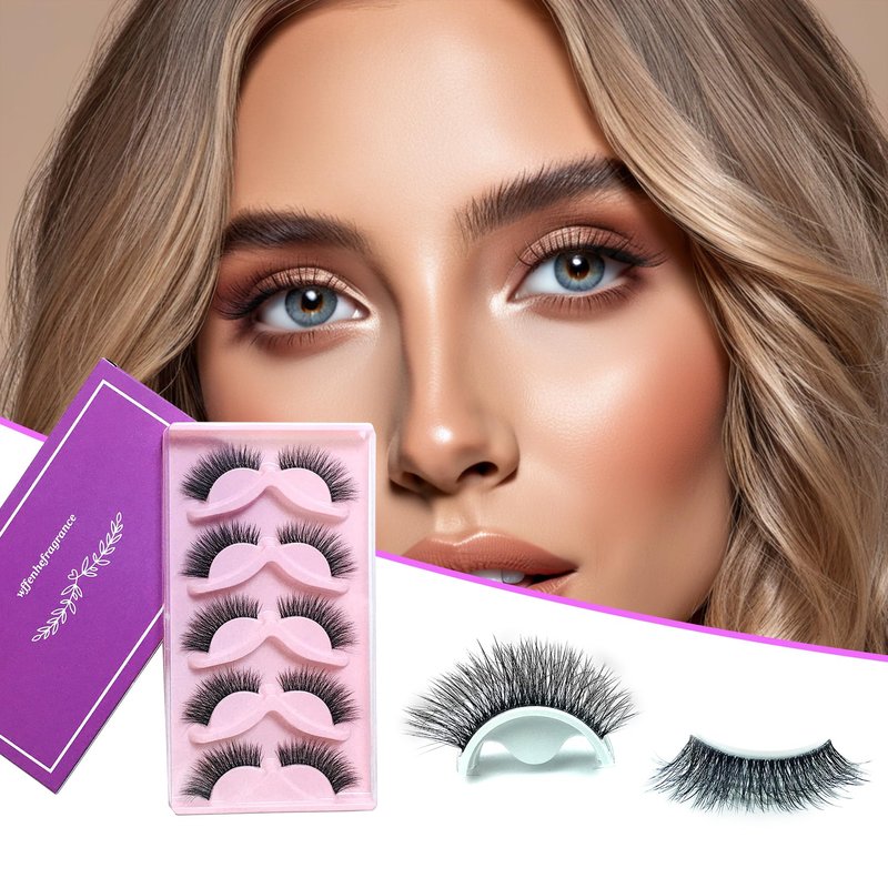 Wffenhefragrance Artificial Mink Eyelashes - Fluffy Wispy Lashes 5 Pairs|Natural Look False Eyelashes Extensions|Contact Lens Friendly|Easy to Apply|Reusable Strip Lashes|Perfect for Daily Wear, Special Occasions|Suitable for Makeup Enthusiasts|9-15-16mm