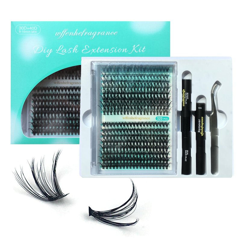 Wffenhefragrance DIY Volume eyelash extensions Kit - Lashes cluster 30D+40D D Curl Individual Lashes | Thick Eyelash extensions Kit 320pcs | Thin Band Cluster Lashes with Bond, Seal, and Tweezers