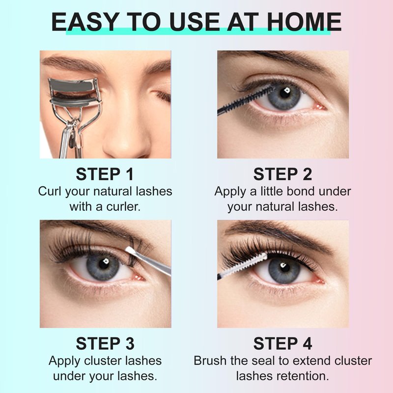 - Easy Application Tips: Follow these steps for easy application: 1). Apply bond to lashes. 2). Use tweezers to gently remove eyelash extensions from the band. 3). Place lashes under real lashes starting from the outer corner. 4). Apply sealant for long-lasting wear. 5). When removing, gently scrape off with cluster lash remover.