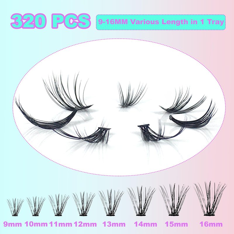 - Comprehensive Kit: Our eyelash extension kit includes 320PCS cluster lashes (30D+40D), eyelash bond and seal, eyelash remover, and tweezers per box. Achieve the perfect extension look at home, saving time and money on salon visits.